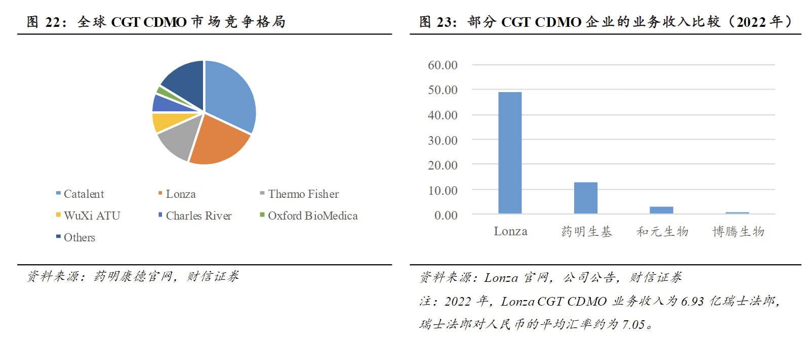 基因治疗CXO市场增长快,行业集中度高。2017年以来,Kymriah、Carvykti等多款基因治疗药物获批上市,且展现出广阔的商业化前景。2023年11月、12月,全球首款CRISPR基因编辑疗法相继在英国、美国获批上市,基因编辑疗法商业化应用实现突破。由于技术门槛高等,全球CGTCDMO市场主要集中在Catalent、Lonza、ThermoFisher、药明生基等企业手中,行业集中度较高。