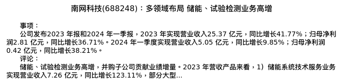 值得注意的是:2024年05月华创证券的吴鸣远分析师,首次发布关于南网科技的研究报告,标题为:南网科技(688248):多领域布局 储能、试验检测业务高增。