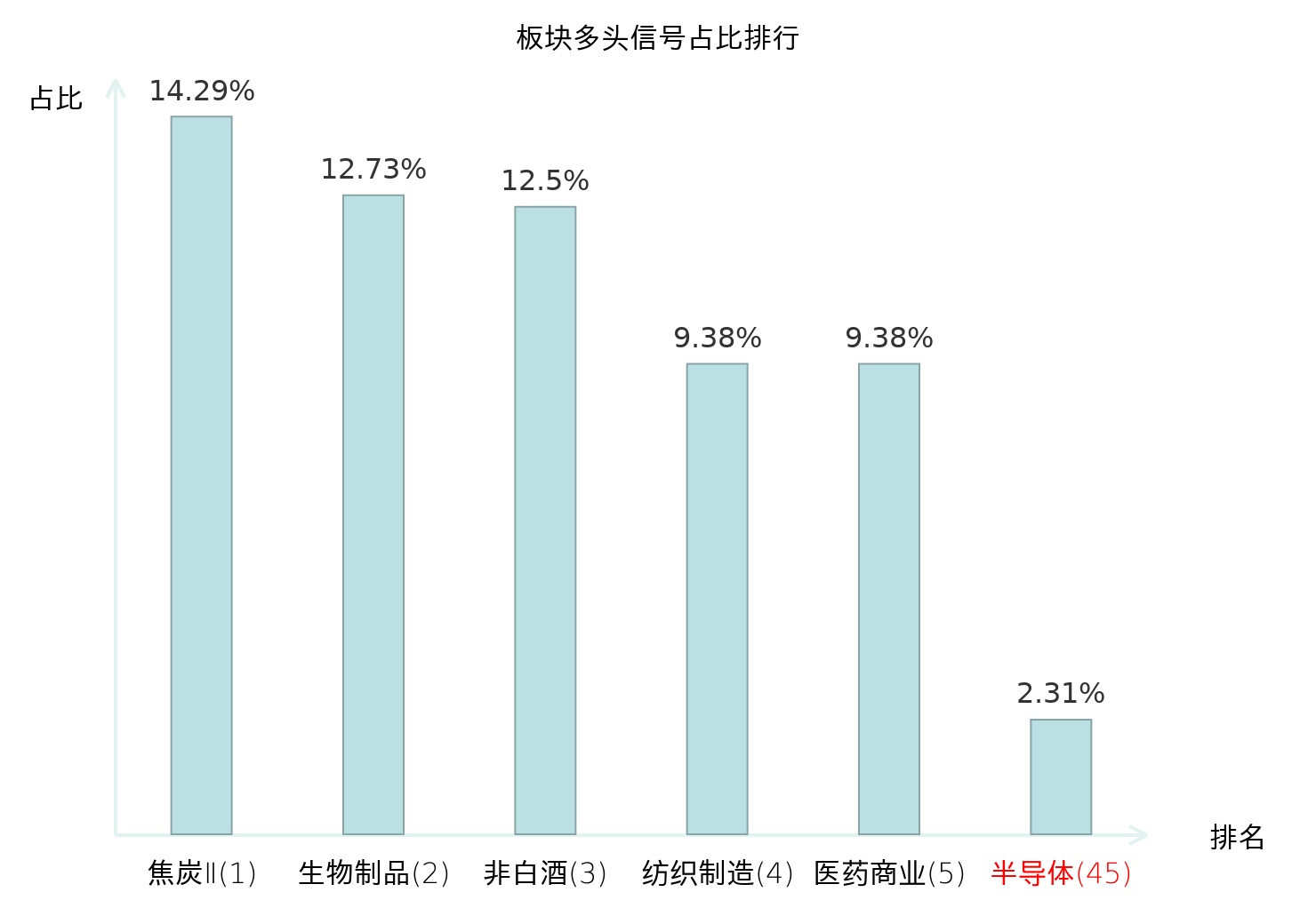 全市场所有行业板块中主力多头信号占比排名中,焦炭Ⅱ板块位居第一。焦炭Ⅱ板块名次提升最快,较昨日上升120位。