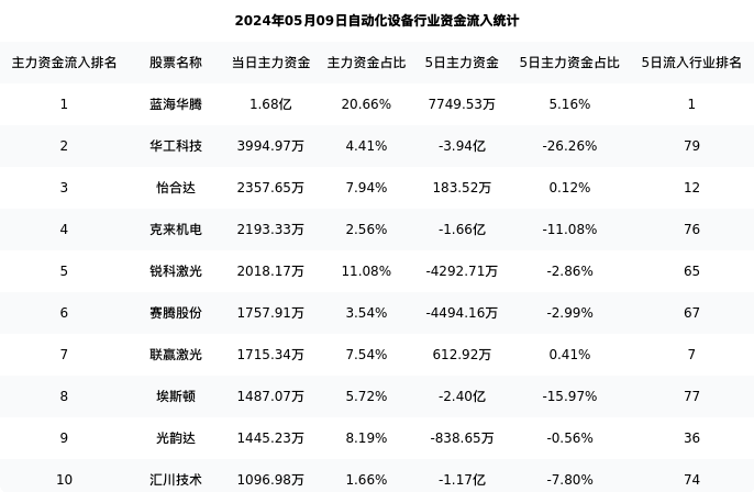 从主力资金流向来看,自动化设备行业今日主力资金流入32.21亿元,在所有申万二级行业中排名:40/131。