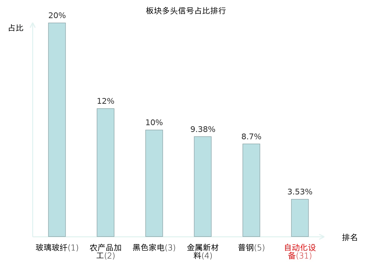 全市场所有行业板块中主力多头信号占比排名中,玻璃玻纤板块位居第一。玻璃玻纤板块名次提升最快,较昨日上升108位。