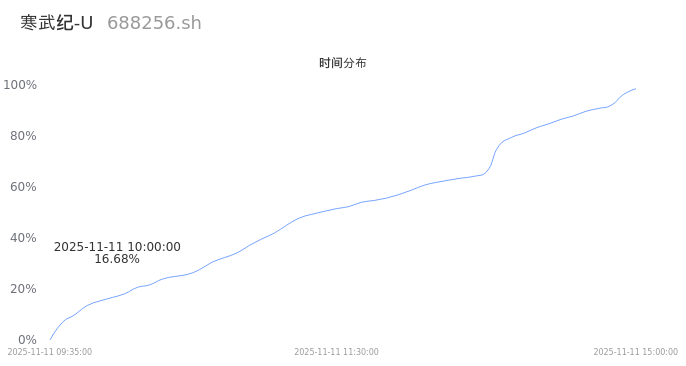 688256寒武纪-U2025年11月11日成交9.02万手,成交金额121.09亿,相较昨日放量828手,换手率2.16%,成交清淡。