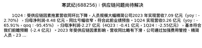 值得注意的是:2024年05月华泰证券的黄乐平/张皓怡/陈钰分析师,首次发布关于寒武纪的研究报告,标题为:寒武纪(688256):供应链问题尚待解决。