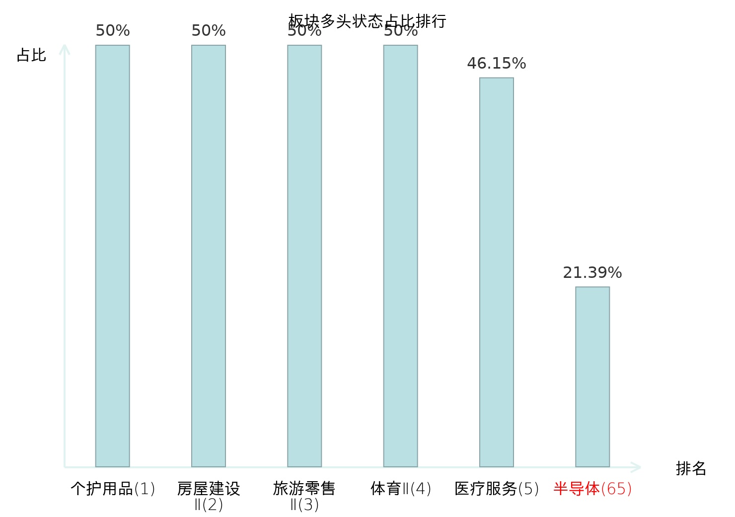 全市场所有行业板块中主力多头状态占比排名中,个护用品板块位居第一。影视院线板块名次提升最快,较昨日上升56位。