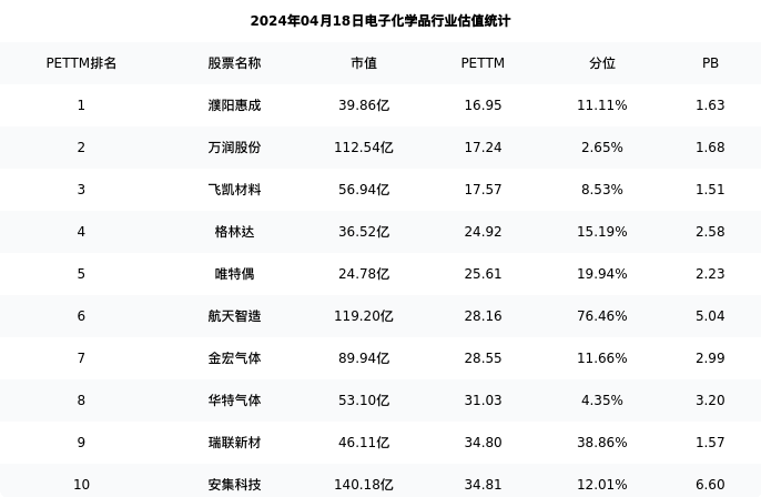 从估值角度看:华特气体最新市盈率PETTM为31.03,在行业内排名8/32,处于4.35分位。
