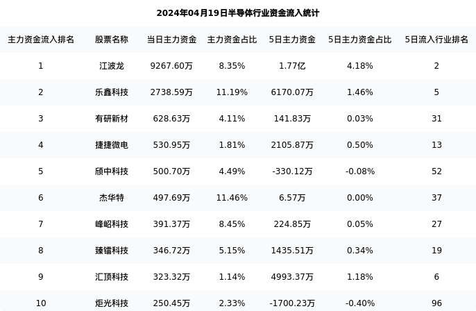 从主力资金流向来看,半导体行业今日主力资金流入77.02亿元,在所有申万二级行业中排名:57/131。