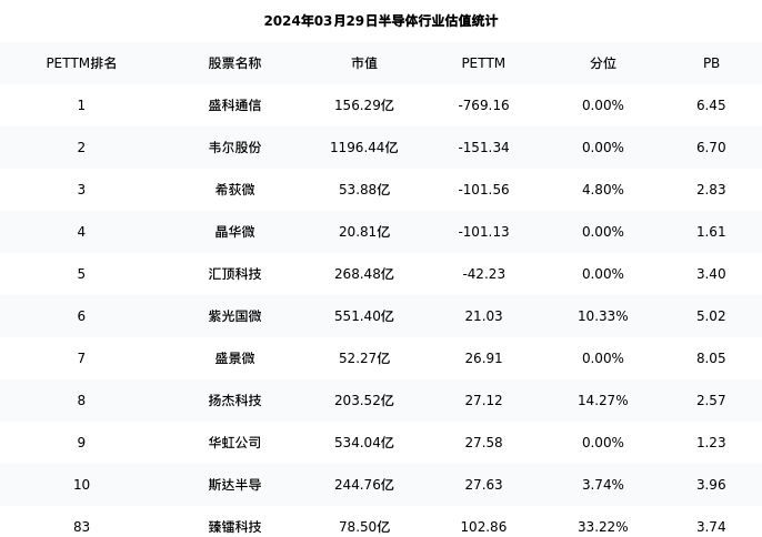 臻镭科技最新报告期数据为年报,下表汇总了半导体行业内市值靠前的公司年报主要经营数据