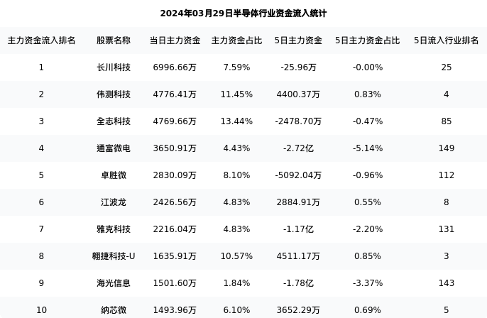 下表为今日行业内流入前10股票的信息