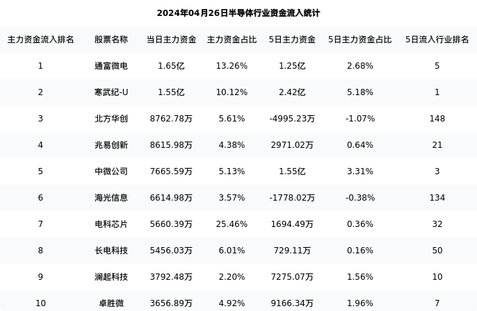 下表为今日行业内流入前10股票的信息