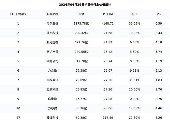 臻镭科技最新报告期数据为一季度,下表汇总了半导体行业内市值靠前的公司一季度主要经营数据