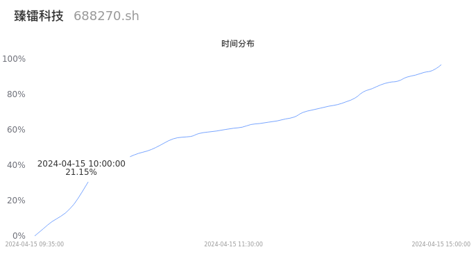 688270臻镭科技2024年04月15日成交3.52万手,成交金额1.53亿元,相较昨日放量1.69万手,换手率3.42%,成交清淡。