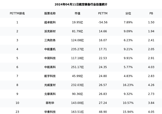 华秦科技最新报告期数据为三季度,下表汇总了航空装备行业内市值靠前的公司三季度主要经营数据