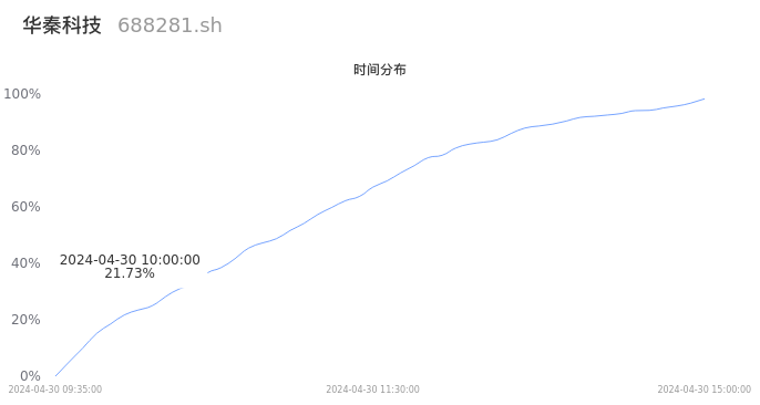 688281华秦科技2024年04月30日成交1.04万手,成交金额1.42亿元,相较昨日缩量679手,换手率2.98%,成交清淡。