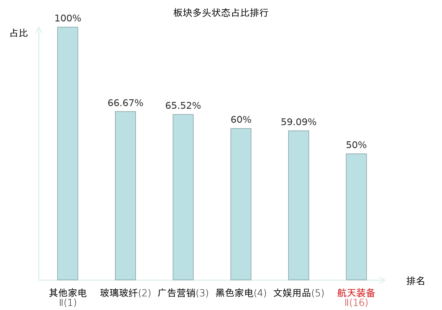 全市场所有行业板块中主力多头状态占比排名中,其他家电Ⅱ板块位居第一。体育Ⅱ板块名次提升最快,较昨日上升57位。