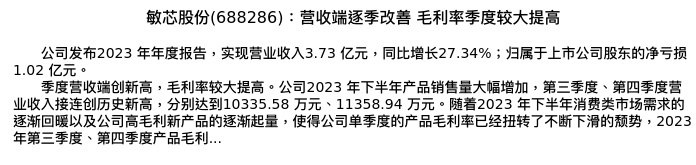 值得注意的是:2024年05月海通证券的张晓飞/华晋书分析师,首次发布关于敏芯股份的研究报告,标题为:敏芯股份(688286):营收端逐季改善 毛利率季度较大提高。