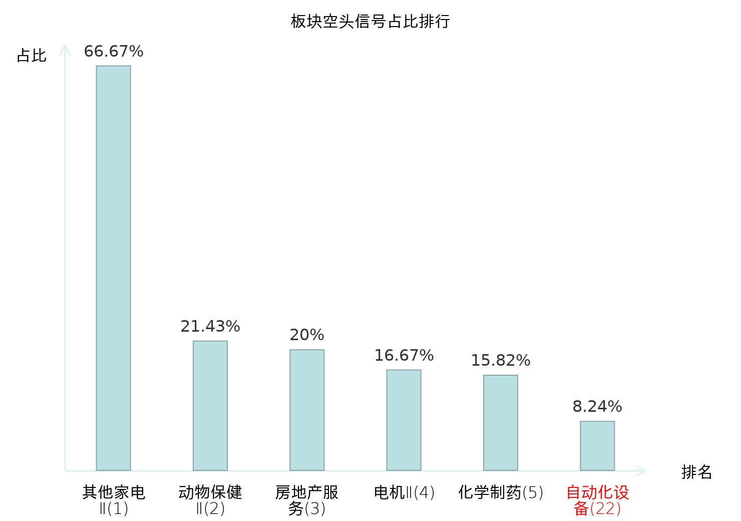 全市场所有行业板块中主力空头信号占比排名中,其他家电Ⅱ板块位居第一。家电零部件Ⅱ板块名次提升最快,较昨日上升110位。