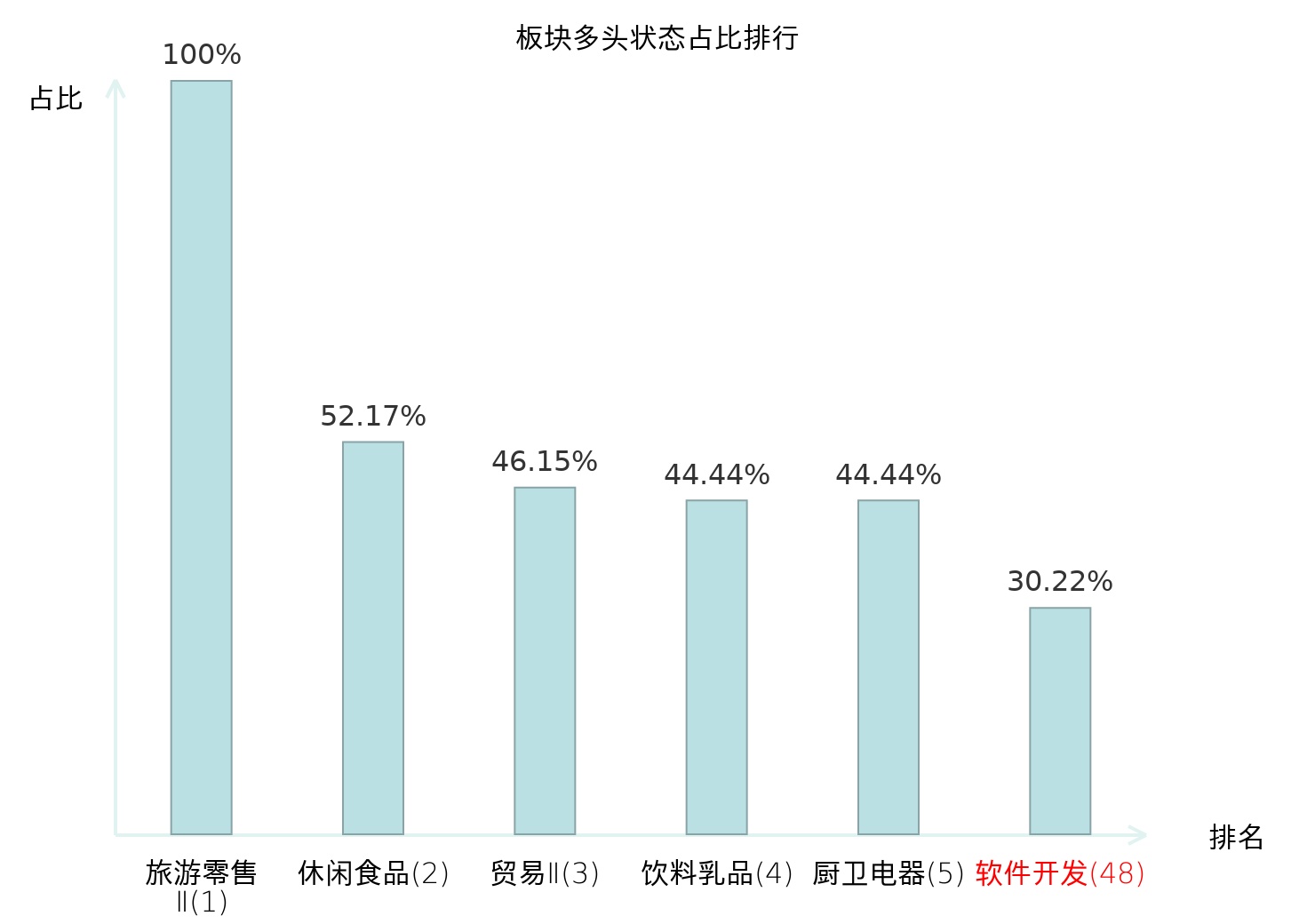 从主力宝信号数据分析,金橙子所属的软件开发板块中共有42只股票处于主力多头状态,主力多头状态占比在全行业中排名第48位,较昨日下降5位。较高的排名表明主力对于该板块整体看多意愿较强,但此次排名下降可能反映了主力对该板块态度的一些微调。全市场所有行业板块中主力多头状态占比排名中,旅游零售Ⅱ板块位居第一。乘用车板块名次提升最快,较昨日上升91位。这些变动揭示了不同行业间主力资金动向的趋势,为投资者提供了关于市场情绪和潜在投资机会的重要线索。