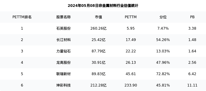 从估值角度看:联瑞新材最新市盈率PETTM为45.61,在行业内排名5/7,处于72.82分位。