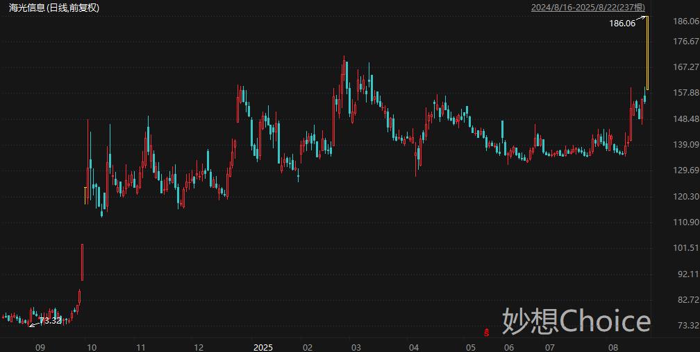 国内唯一一家生产x86芯片的企业海光信息周五收盘同样20CM涨停,触及186.06元/股,刷新历史新高,最新总市值超4300亿元。此前,海光信息8月5日发布半年报,公司2025年上半年营业收入54.64亿元,同比增长45.21%。净利润12.01亿元,同比增长40.78%。公司Q1净利5.06亿元,据此计算,Q2净利6.96亿元,环比增长37.49%。