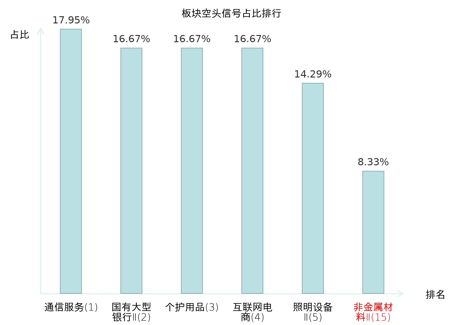 全市场所有行业板块中主力空头信号占比排名中,通信服务板块位居第一。种植业板块名次提升最快,较昨日上升110位。