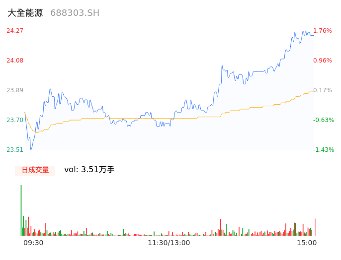 05月17日,大全能源收报24.25,股价涨幅1.68%,成交金额8375.02万元,换手率0.67%。