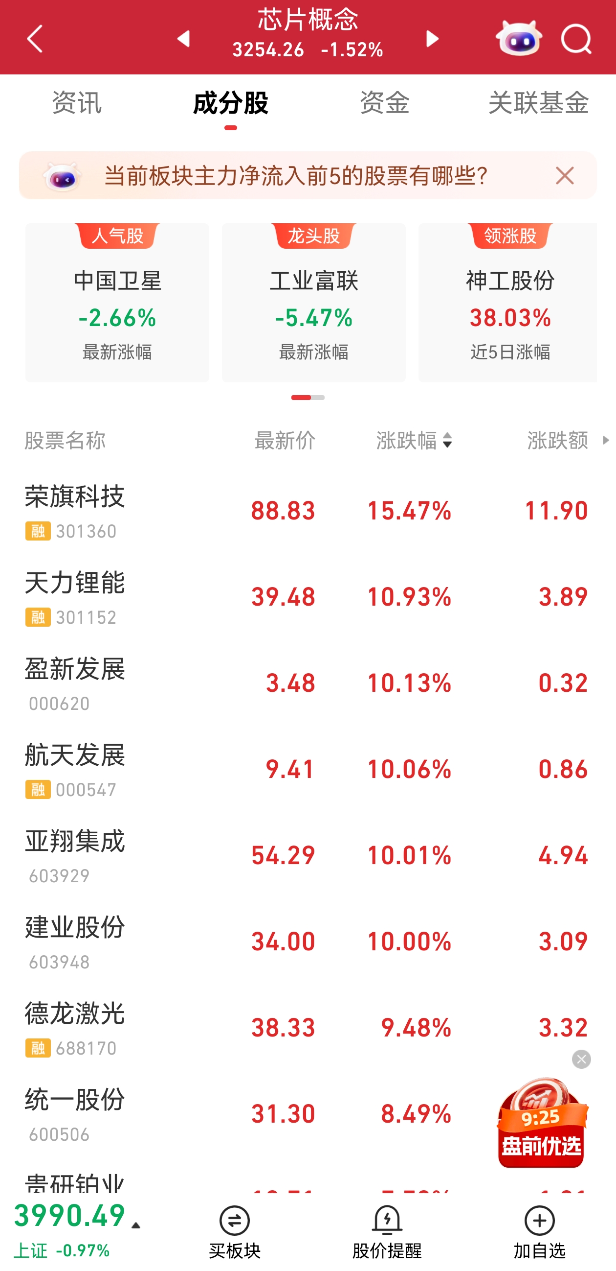 科技股整体回落,“易中天”(新易盛、中际旭创、天孚通信)、“纪连海”(寒武纪、海光信息、工业富联)集体下跌;中芯国际跌4%。