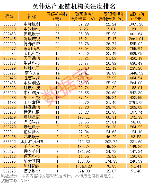 成长性最好的概念股是谁?根据机构一致预测,天孚通信、京东方A、胜宏科技、虹软科技等个股机构一致预测今年、明年净利增速均超30%。