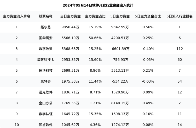 从主力资金流向来看,软件开发行业今日主力资金流入54.75亿元,在所有申万二级行业中排名:16/131。