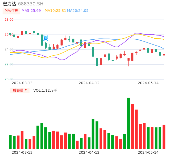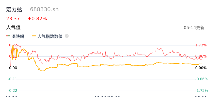 05月14日,宏力达收报23.37,股价涨幅0.82%,成交金额2624.99万元,换手率0.80%。