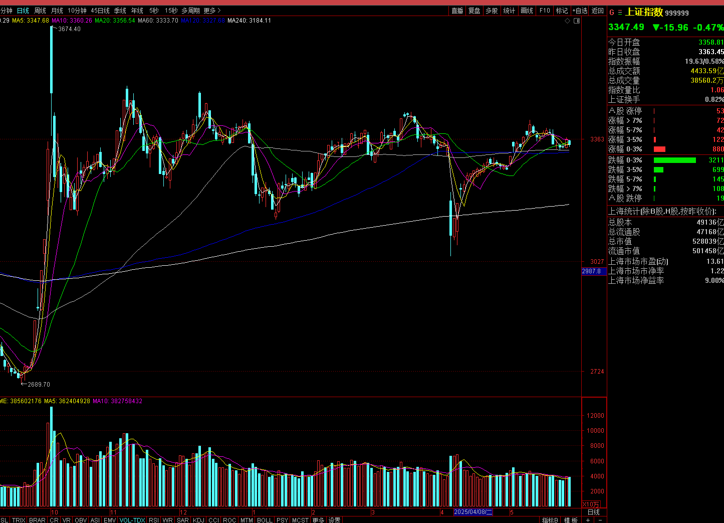 沪指下跌 0.47%,深成指下跌 0.85%,创业板指下跌 0.96%。市场整体个股跌多涨少,下跌家数达 4163 家,非 ST 股涨停 41 家、跌停 16 家,情绪降至冰点。两市成交额总计 1.13 万亿元,较前一日缩量 462 亿元,成交量保持相对稳定