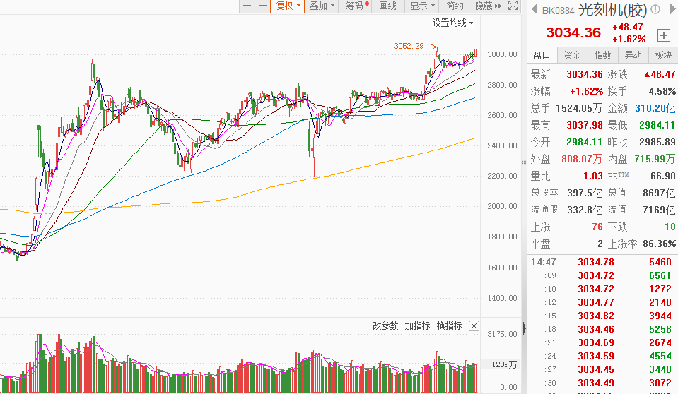 事件驱动:芯片产业链震荡拉升,光刻机方向领涨,东方嘉盛涨停,茂莱光学、中颖电子涨近10%,汇成真空、上海新阳、华虹公司、凯美特气、中芯国际跟涨。消息面上,SEMI(国际半导体产业协会)在《年中总半导体设备预测报告》中预测,2025年全球原始设备制造商(OEM)的半导体制造设备总销售额将创下1255亿美元的新纪录,同比增长7.4%。