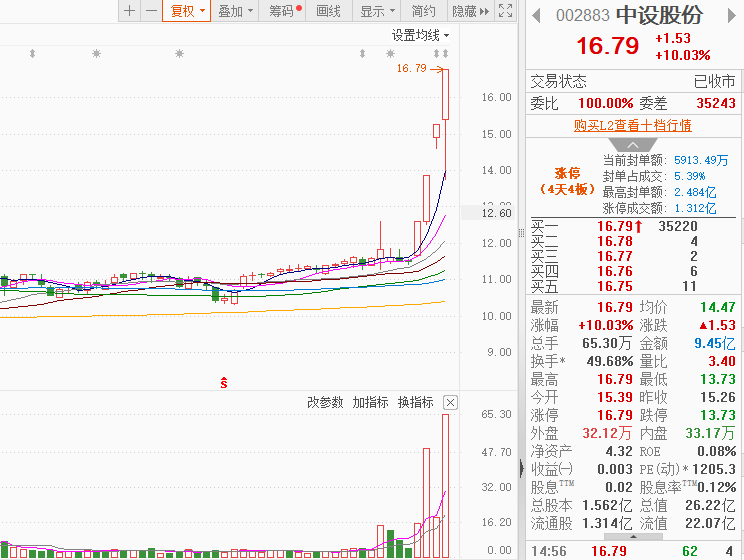 市场情绪:继1.2万亿超级水电工程后,海南即将封关全力加速建设自由贸易港。利好频出,市场情绪得到很好承接和提振;全市场超4300只个股上涨。今日共73股涨停,连板股总数18只,19股封板未遂,封板率为79%(不含ST股、退市股)。焦点股方面,超级水电概念股大幅分化,北交所恒立钻具30CM4连板,深水规院走出20CM4连板,西藏天路、中铁工业一字涨停晋级4连板,中设股份午后上演“地天板”录得4连板,中国电建全天成交额超158亿收获4连板。