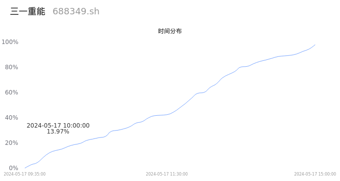 688349三一重能2024年05月17日成交1.63万手,成交金额4536.28万元,相较昨日缩量2302手,换手率0.88%,成交清淡。