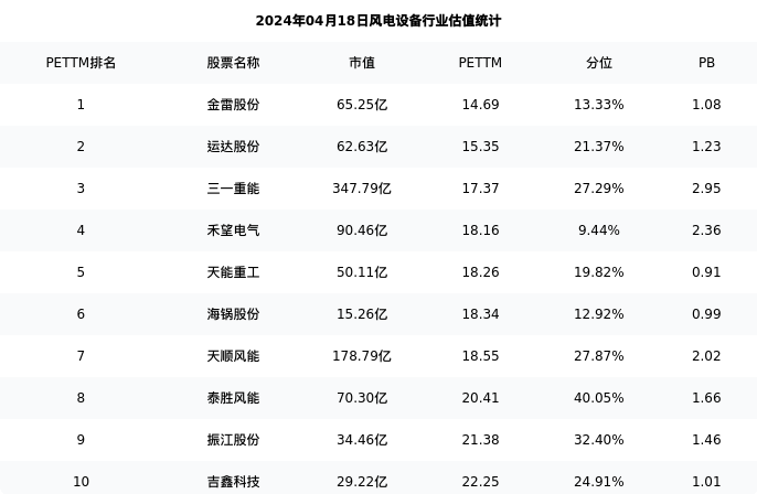 从估值角度看:三一重能最新市盈率PETTM为17.37,在行业内排名3/27,处于27.29分位。