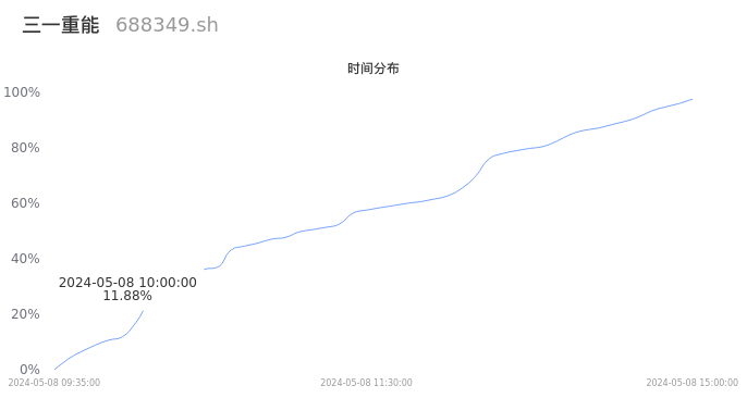 688349三一重能2024年05月08日成交2.32万手,成交金额6458.93万元,相较昨日缩量9029手,换手率1.25%,成交清淡。