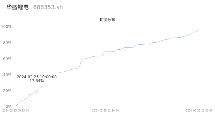 688353华盛锂电2024年02月23日成交5327手,成交金额1362.65万元,相较昨日放量1161手,换手率0.87%,成交清淡。