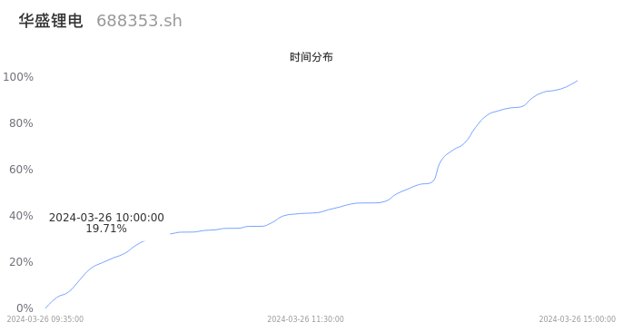 688353华盛锂电2024年03月26日成交4799手,成交金额1153.74万元,相较昨日放量1391手,换手率0.78%,成交清淡。