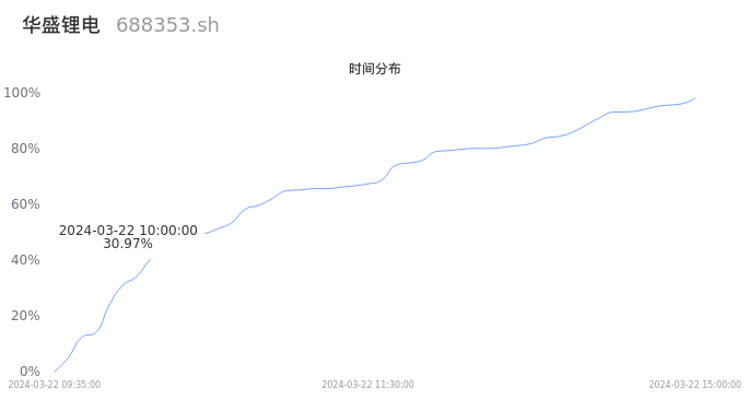 688353华盛锂电2024年03月22日成交4893手,成交金额1185.60万元,相较昨日缩量2060手,换手率0.80%,成交清淡。