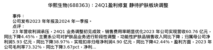 值得注意的是:2024年05月国元证券的李典分析师,首次发布关于华熙生物的研究报告,标题为:华熙生物(688363):24Q1盈利修复 静待护肤板块调整。