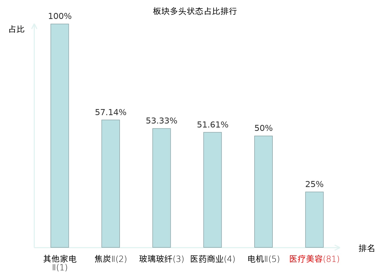 全市场所有行业板块中主力多头状态占比排名中,其他家电Ⅱ板块位居第一。白色家电板块名次提升最快,较昨日上升67位。