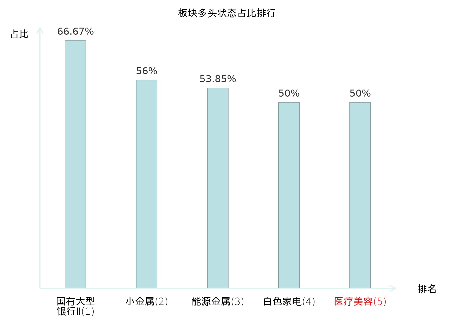 全市场所有行业板块中主力多头状态占比排名中,国有大型银行Ⅱ板块位居第一。酒店餐饮板块名次提升最快,较昨日上升59位。