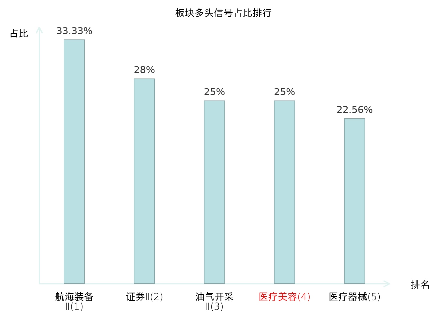 全市场所有行业板块中主力多头信号占比排名中,航海装备Ⅱ板块位居第一。油气开采Ⅱ板块名次提升最快,较昨日上升123位。