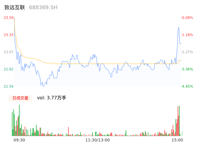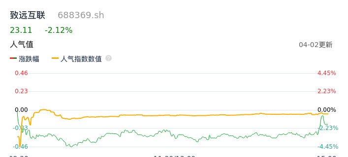 04月02日,致远互联收报23.11,股价涨幅-2.12%,成交金额8644.57万元,换手率3.27%。