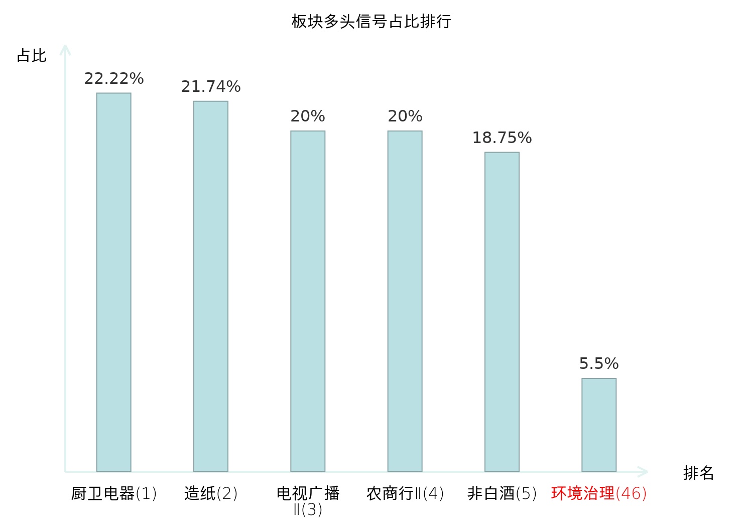 全市场所有行业板块中主力多头信号占比排名中,厨卫电器板块位居第一。厨卫电器板块名次提升最快,较昨日上升115位。