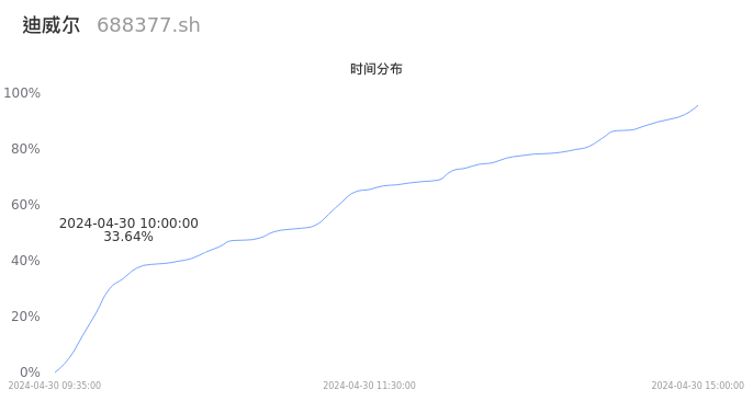 根据成交分布分析,该股票当天缩量成交,成交清淡。时间上看,早盘前半小时成交量占据当天总成交量的33.64%;价格上看,成交呈现左偏峰。成交分布分析主要研究股票成交的分布特性,不具有预测功能,请知悉。