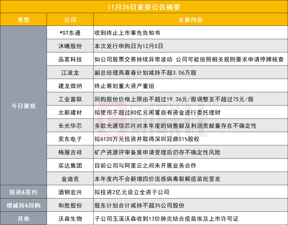 *ST东通(300379.SZ)公告称,公司于2025年11月26日收到深圳证券交易所下发的《事先告知书》,拟决定终止公司股票上市交易。公司2019年至2022年年度报告信息披露存在虚假记载,触及创业板股票上市规则规定的股票终止上市情形。公司有权申请听证或者提出书面陈述和申辩,逾期视为放弃权利。若公司未在规定期限内提出听证申请,深圳证券交易所上市委员会将审议是否终止公司股票上市。公司股票被终止上市后,将进入退市整理期,整理期结束后摘牌并终止上市。公司应确保股票在摘牌之日起四十五个交易日内可以转让。