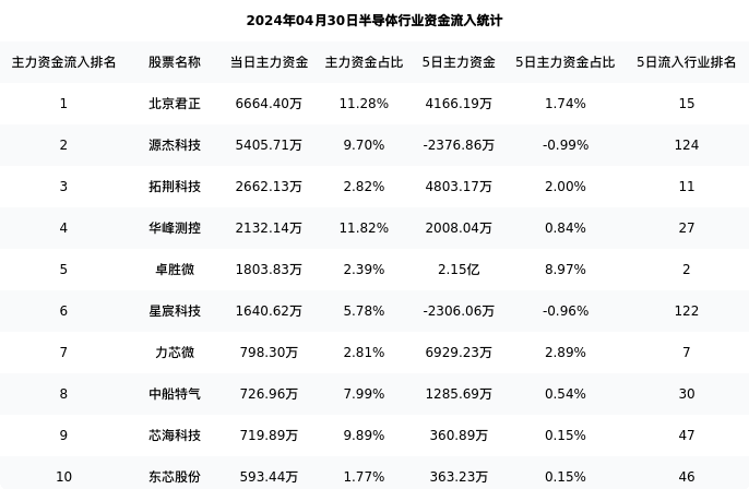 从主力资金流向来看,半导体行业今日主力资金流入100.39亿元,在所有申万二级行业中排名:98/131。