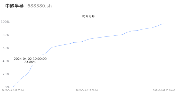 根据成交分布分析,该股票当天缩量成交,成交清淡。时间上看,早盘前半小时成交量占据当天总成交量的23.8%;价格上看,成交呈现中间峰。成交分布分析主要研究股票成交的分布特性,不具有预测功能,请知悉。