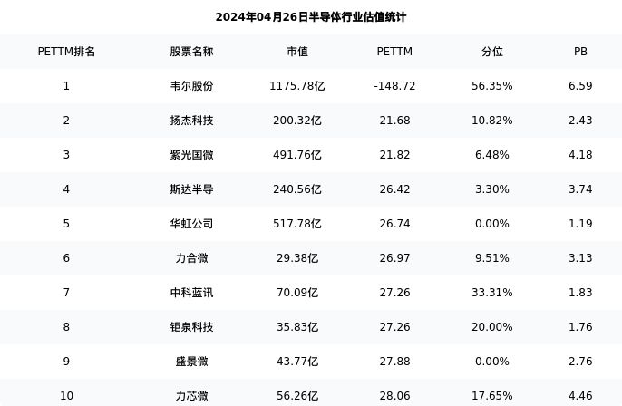 中微半导最新报告期数据为一季度,下表汇总了半导体行业内市值靠前的公司一季度主要经营数据