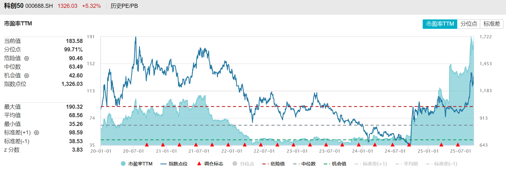 受大涨提振,创业板指今日创阶段新高,科创50指数也逼近前期高点。从估值情况上看,创业板指目前市盈率42.68倍,处于近十年47.51%分位点;市净率5.31倍,处于近十年59.61%分位点。此外,科创50指数目前市盈率183.58倍,处于近十年99.71%分位点;市净率5.98倍、处于近十年64.62%分位点。